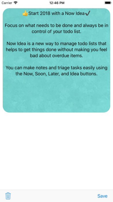 Quickly scan your todos and reminders and decide what needs doing right now, soon and later.