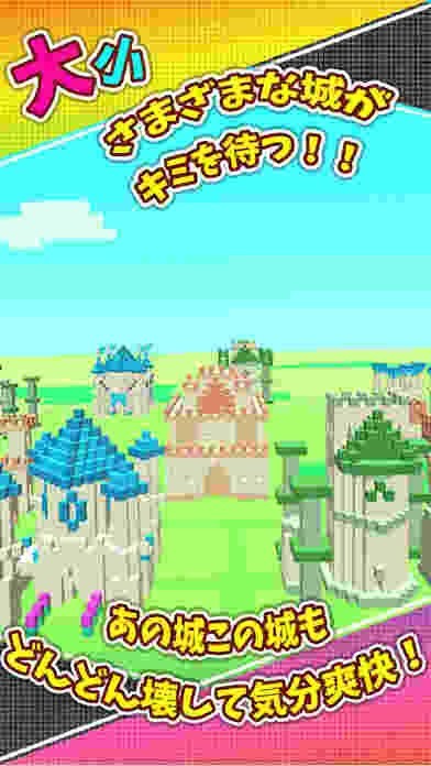 ドット絵の懐かしい雰囲気の作品とは裏腹にお城の本格的な破壊アクションを楽しむことが出来ます。また、お城は正面からだけではなく、反対側からも攻撃できるので、様々な角度からの破壊を楽しんでみましょう!