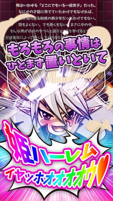かわいい女の子キャラクターが多数登場! 「魔王へと転生した俺が世界征服をして姫ハーレムへと至る話」は、平凡な主人公が魔王に転生し、異世界で世界征服を目指すカジュアルゲームです。 敵キャラクターとして登場するのは可愛い姫ばかりなのがこのゲームのポイント。 大量の兵士をスワイプで倒すことで魔力とコインを獲得できる他、タイミングよくタップすることで、必殺の奥義を発動することができます。 ステージクリアで深まる姫との絆と、ちょっとドキドキのお宝画像も見逃せません!