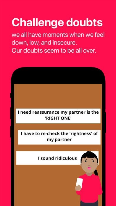 Training using this application will hopefully allow for gradual, steady learning of more positive self-talk thereby helping to break the vicious thought cycle maintaining relationship doubts and preoccupations.