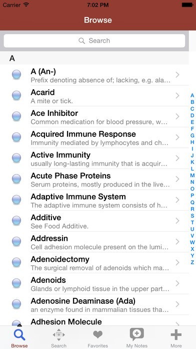 App Storeより引用患者と医療スタッフのための理想。迅速関節炎や自己免疫疾患などのアレルギー、喘息および免疫学条件について説明、写真や症状の定義、手順、および治療法を見つける。高速検索インデックス、お気に入りのブックマークや情報を共有し、エクスポートする機能が含まれています。