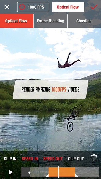 『SloPro - 1000fps Slow Motion Video』では、スマートフォンなどで撮影した動画をその場で編集することが可能です。 このアプリの主な機能は、動画をスローモーションにするものです。動画の再生開始地点と終了地点を選択、その間の再生速度を50%、40%、25%、500FPS、1000FPSのいずれかに指定できます。 また、逆にその再生速度を速めることも可能です。1.3倍、2倍、4倍から選んで、クリックすると高速で再生された動画が出来上がります。 アクロバティックなスポーツを撮影した動画の編集には特に最適で、実際の時間では一瞬で終わってしまう最大の見どころを、スローモーションに加工することでじっくりと楽しむことができるようになります。