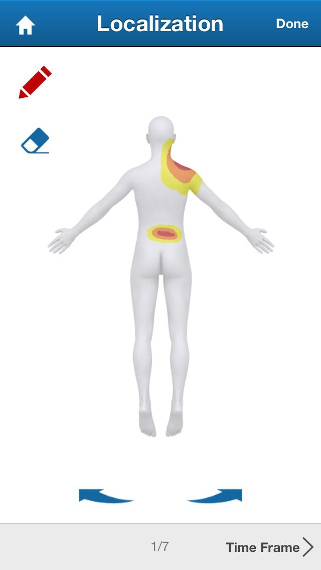 3Dアバターの表示に対応していて、不調箇所がマーキング出来るようになっています。日数単位で痛みの経過を追っていく事が可能で、チャートが表示出来るのもメリットです。