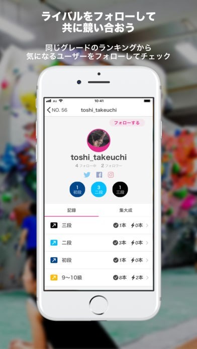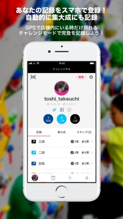 関東を中心に店舗を展開しているボルダリングジム「Rocky」で使えるアプリになっています。登頂セットが難易度別に設定されており、それをクリアすることで技術をどんどん高めていくことができます。