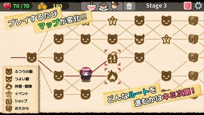 カードで戦うタイプのゲームでキャラクターがかわいく、ルート分岐の要素も楽しめます。