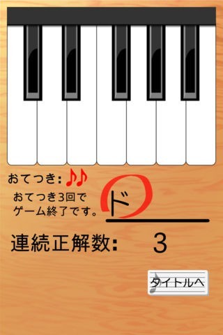聞こえた音の鍵盤をタップし、連続正解記録の更新を目指す