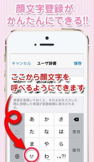 ワンタップでユーザー辞書に登録できてカワイイ顔文字を簡単に呼び出して使用することができる