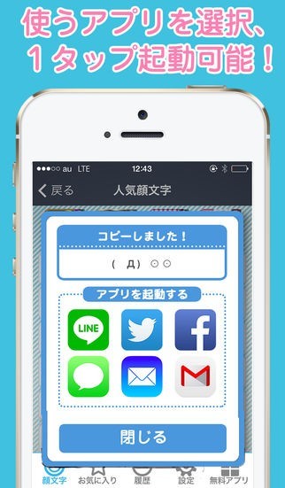 タップでコピーするだけだから、女子にも嬉しい顔文字をもっと可愛く便利に使える!