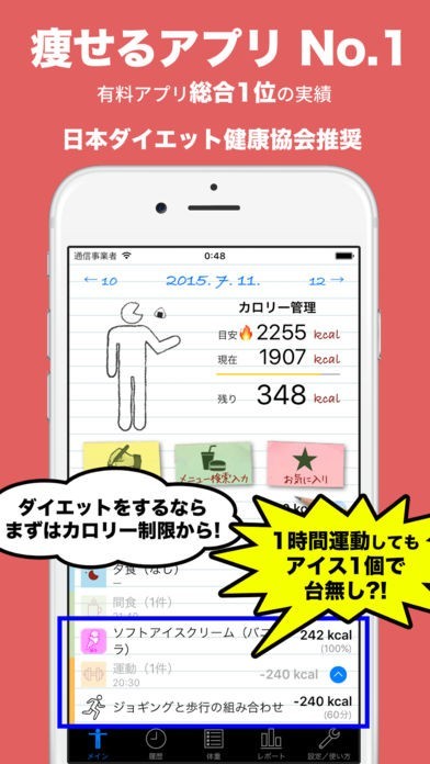 日本ダイエット健康協会推奨の、カロリー管理で痩せるアプリ!