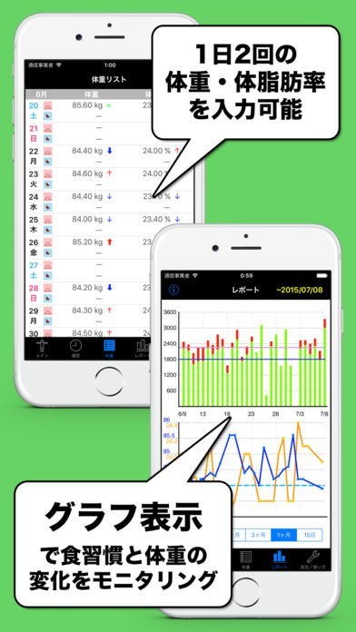 カロリー計算に対応していて、体重をグラフで管理出来るのが良いです
