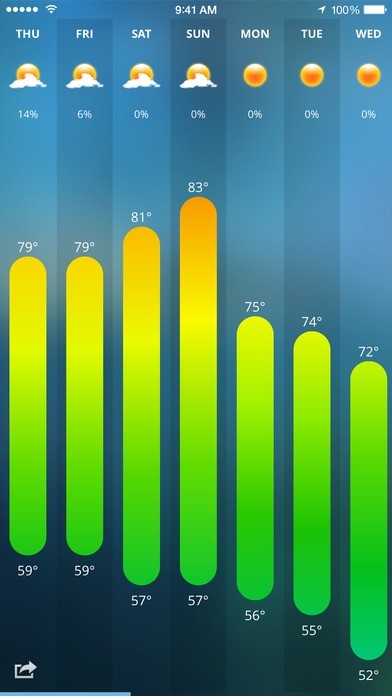 FacebookなどのSNSを使って、今日の天気を簡単に共有することが出来ます。また、友人や家族たちと週ごとの予報を共有することでも、アプリをより楽しむことが出来ます。