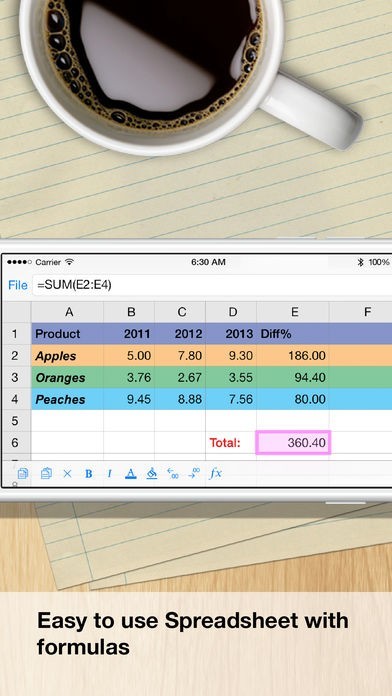 出先などパソコンがない時でも迅速Excelや数字などの主要なオフィスソリューションと互換性のある美しいスプレッドシートを作成出来るので助かってます。