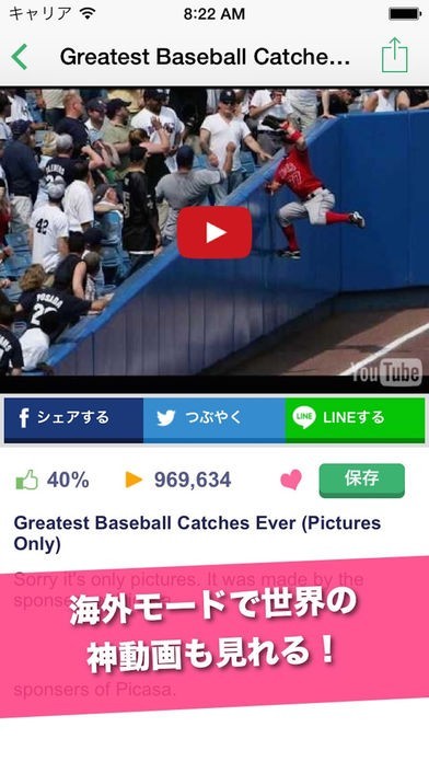 野球に興味がない人でも、このアプリに収録されているインパクトのある動画を観れば、きっと興味がわくはず。あなたの周りの友達に教えて、野球ファンをどんどん増やしましょう!