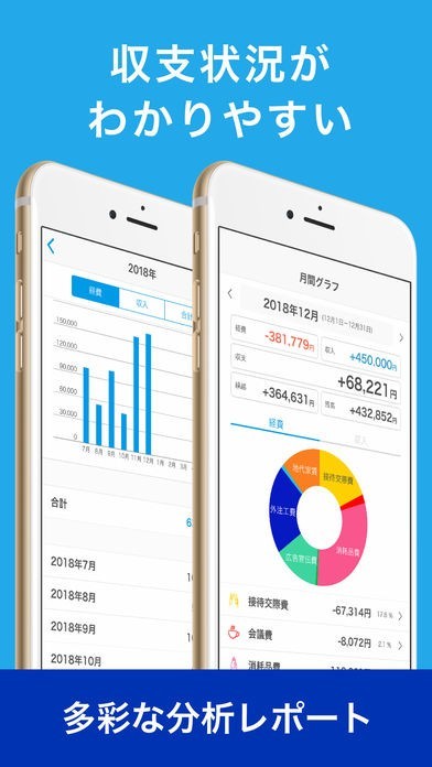 資産や収支の推移を、レポートでチェックすることが可能です。経費や所得の内訳をグラフで表示できるので、状況の把握が簡単。月ごとの帳簿を分析をして、事業に役立てましょう。