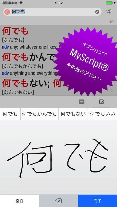 指で書くだけで文字の入力が可能です。また一度ダウンロードしちゃえばその後の利用はインターネットに接続していない状況でも可能に!いつでもどこでも辞書がわりに使用できます。