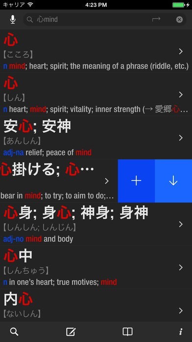 簡単な検索方法で漢字を検索するだけで様々な機能を使うことが出来ます。意味や英単語表示はもちろん、書き順や部首などを調べるのにも最適な漢字辞典アプリとしてお勧めです。