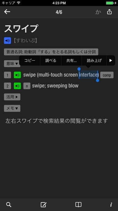 和英辞典としての機能もあるので英語の意味を検索するのもおすすめ