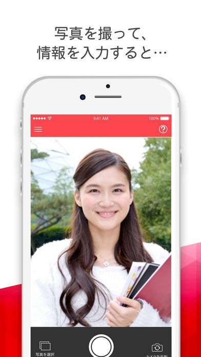 顔写真を撮影。※既にお持ちの写真でも可