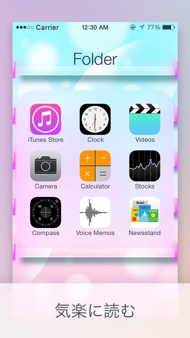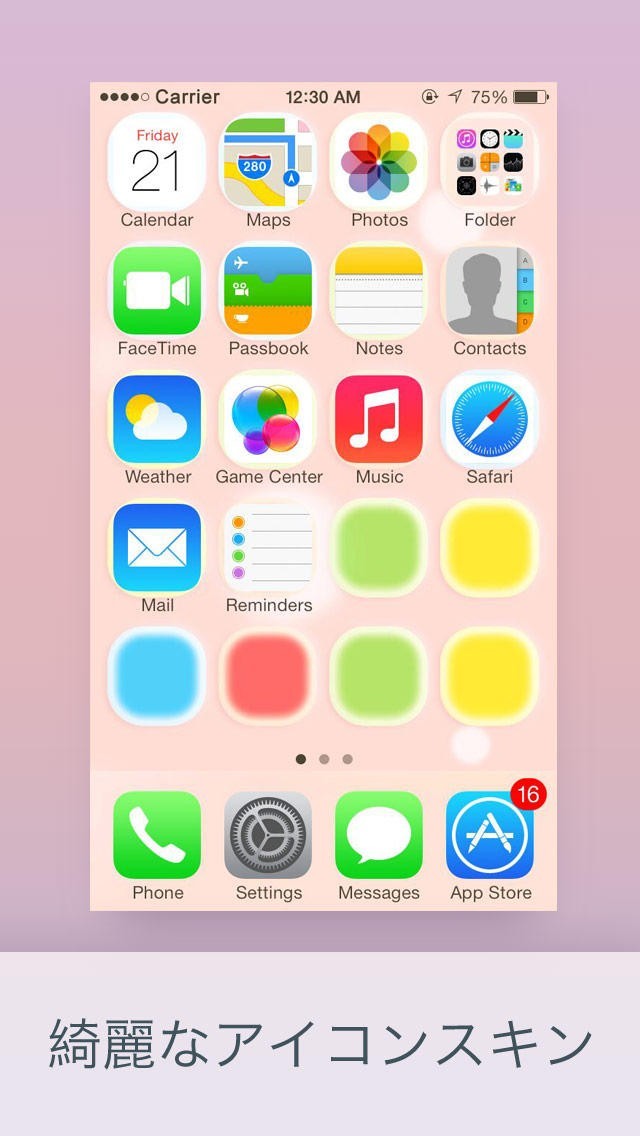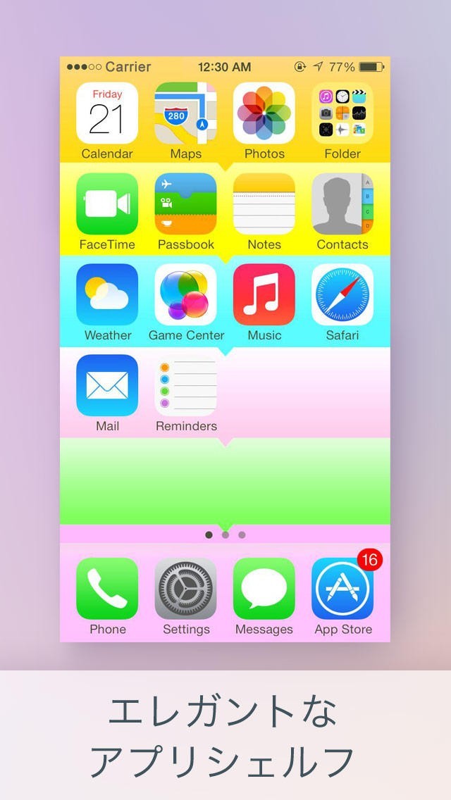 App Storeより引用ホーム画面、ロック画面でのホワイトフォントと画像に対し視覚的に疲れたでしょうか。黒のエレメントならその悩みを晴らしてきます。黒いフォントにすれば、必ず気楽になります。