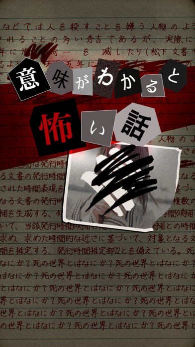 普通の話のようですが、文章の中に変な所が1箇所だけ隠れています。テキストを選択すれば、本当の意味がわかる。多くの怖い話を揃えており、推理と恐怖を一緒に楽しめます。