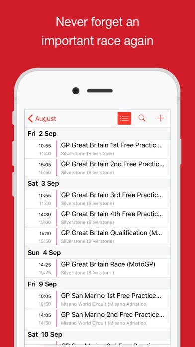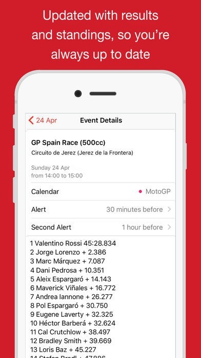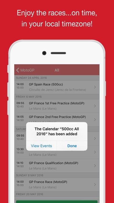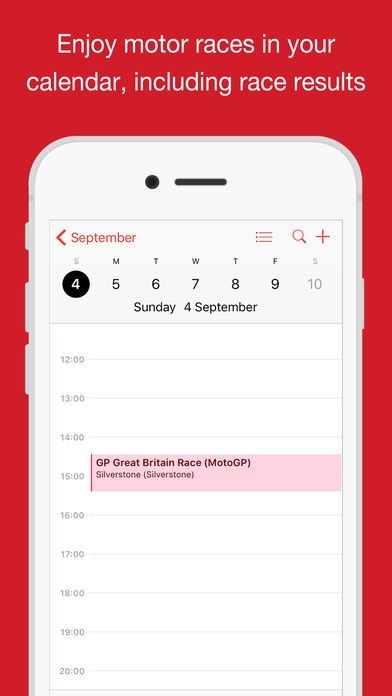 App Storeより引用2018年の全MotoGPレースをカレンダーに追加し、すべてリアルタイムで見よう! 結果はすべてのカレンダーに自動的にアップデートされます。