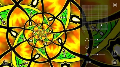 App Storeより引用Create geometric variations of ornamental patterns. Encounter a fascinating world of form, shape and color. Create 3D models, kinematic kaleidocycles, spirals, circle limit pictures á la Escher, animated gifs, videos in endless loops and much more. Be mesmerised, hypnotised, challenged and thrilled. Discover a world beyond limits.