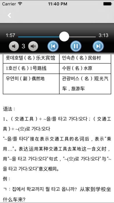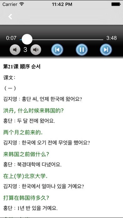 - 补全了所有课文的中文翻译,翻译在每句对话的下面,便于新手中韩双语对照学习;