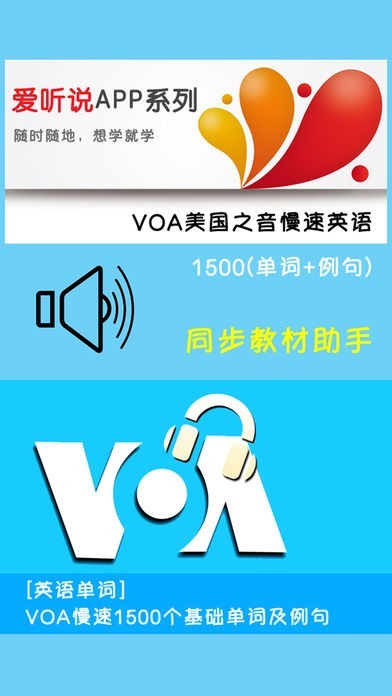 「VOA美国之音慢速英语1500 -单词及例句精听版」関連アプリ