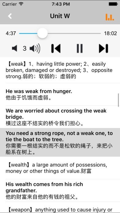 VOA官方提供的1500个基本单词和全部例句,美式真人阅读发音,是各类人士学习英语阅读和听力的一款得力工具。