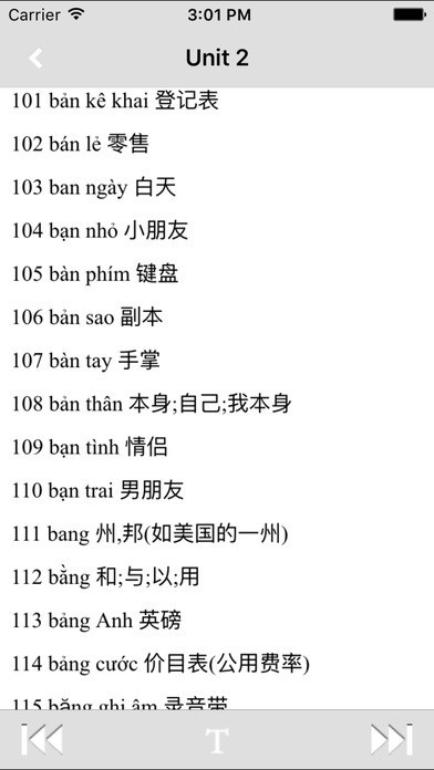 App Storeより引用《越南语基础词汇学习小词典(新版)》是一款越语基础词汇学习的小型工具软件,收入超过3600+条词语表达,分类从交际需要和语言自身特点出发,涉及现代社会生活的方方面面。