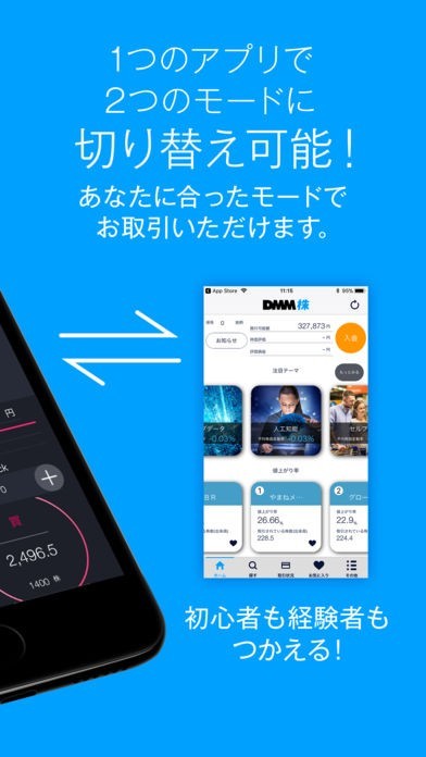 『DMM株』では、経験者の方向けの「ノーマルモード」と初心者の方向けの「かんたんモード」の2種類をご用意。