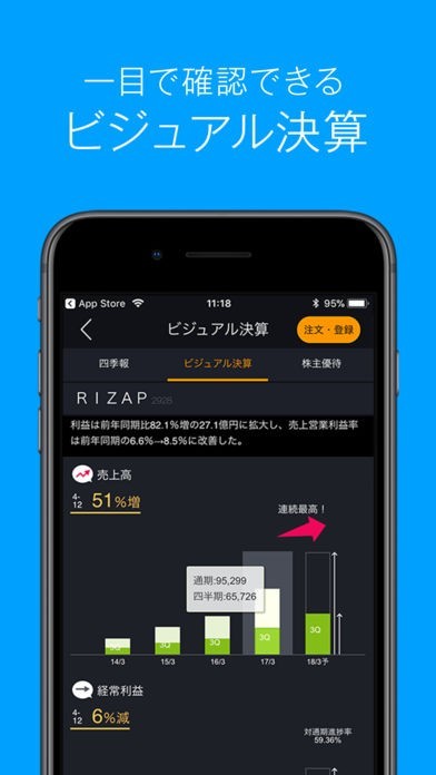 株価分析や「ビジュアル決算」機能で決算情報も一目で確認でき、キーワードやテーマであなたの気になる銘柄が簡単に探せます。