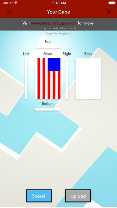 このアプリでは、マインクラフトで使える装備品「マント」を作ることができますが、作った「マント」を別のウェブサイトで共有することができるので、他の人にも自分のデザインを見てもらうことができます。