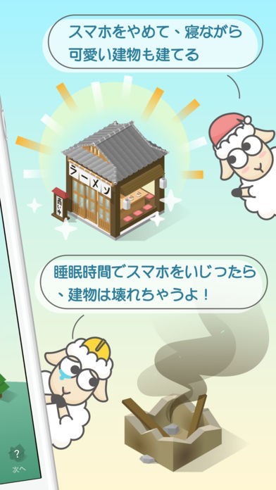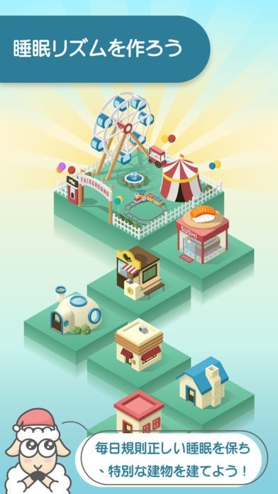 「SleepTown」は、睡眠スケジュールを管理してくれる、睡眠のためのサポートアプリです。 就寝予定時間と起床予定時間を設定し、スケジュール通りに寝起きを繰り返すだけで、自分だけの町「スリープ・タウン」が成長していきます。 睡眠でコインを貯めれば新しい建物のアンロックも可能。 50種類以上の可愛い建物が用意されている他、目覚まし時計機能なども利用できるようになっています。