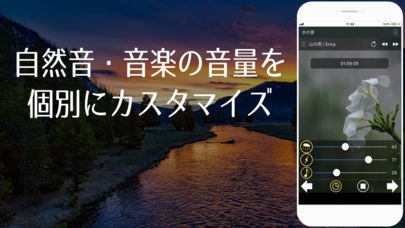 水の音、音楽それぞれ音量調節ができるので、あなた好みの理想的な水の音を作成できます。