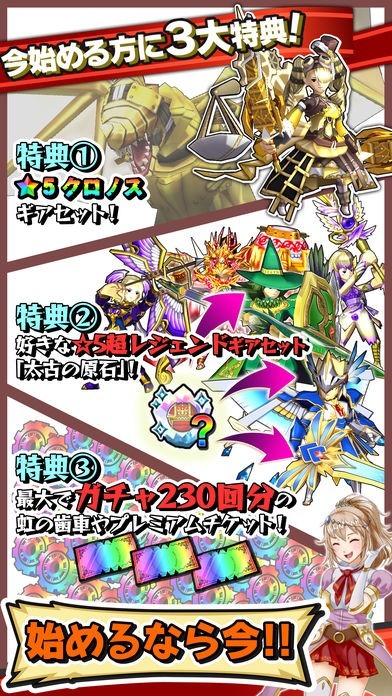 1.1000個以上の虹の歯車・プレミアムチケット10枚など、ガチャ230回相当分プレゼント!