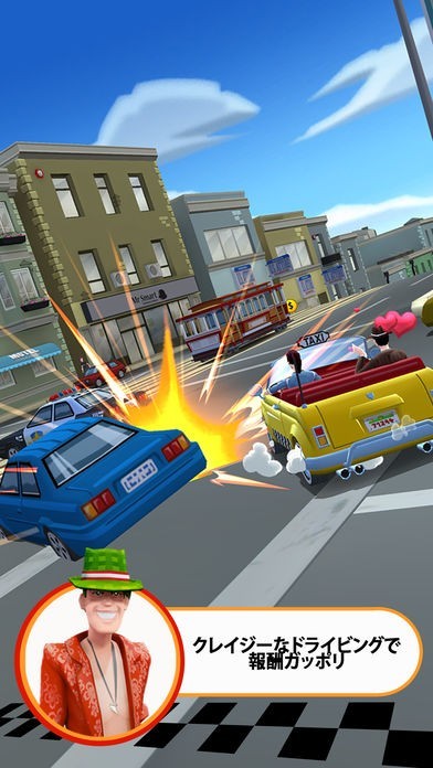 ルールとマナー無用のクレイジーなタクシーゲームです。客をピックアップし目的地へクレイジーに運びます。ショートカットや乗車拒否などなんでもありなタクシードライビングで最高にストレス発散してみてください。