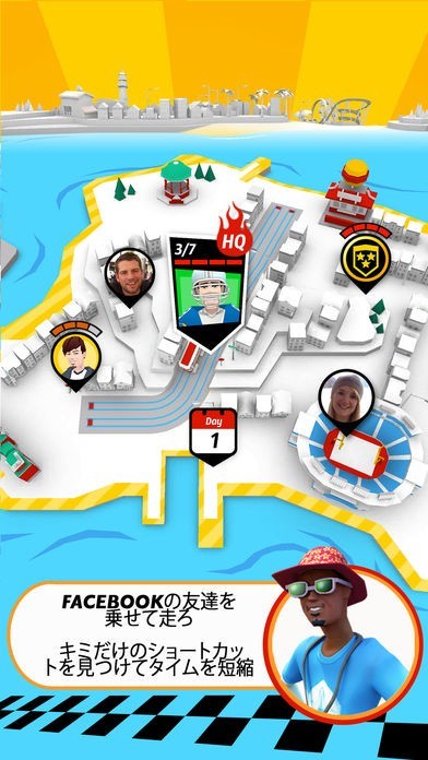 Facebookの友達と一緒にプレイしてスコアバトルを楽しむことができます。頭のネジを全開で外して、よりクレイジーなドライビングを楽しんでください。ぜひ、友人とエキサイティングしながらストレスを発散してください。