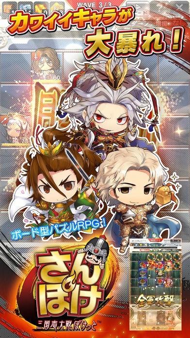 三国志の壮大な世界と魅力あふれる武将たちのストーリーを楽しむことができるRPGゲームアプリが「さんぽけ ~三国志大戦ぽけっと~」です。4人の好きな武将を集めてデッキを組んで指でぐりぐりと武将を動かすことで敵を倒していく爽快感あふれるバトルが魅力のゲームとなっています。さらに独自の計略スキルシステムを使うことで敵キャラクターたちをまとめて倒すことができます。魏呉蜀の三大国が絡み合うストーリーと30名以上の豪華声優陣によるキャラクターボイスも楽しめます。