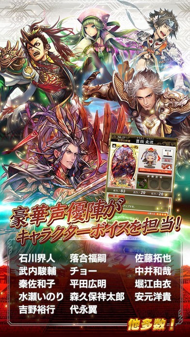 三国志の世界と30名以上の豪華声優陣によるキャラクターボイスつきの武将のRPGを楽しむことができる!