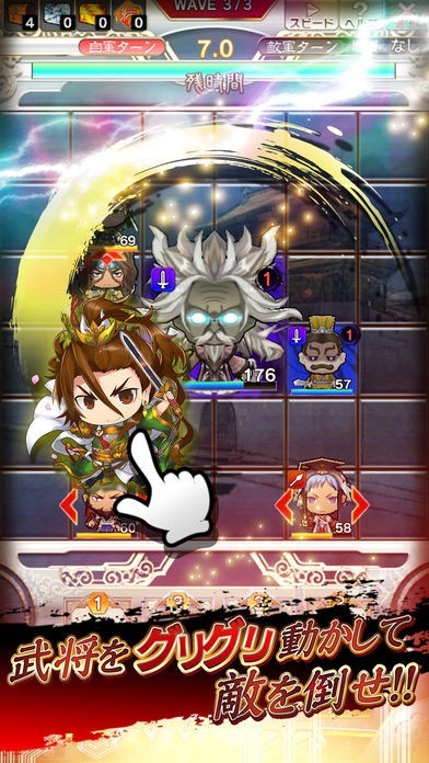 武将を指でぐりぐりと動かすことで敵を倒すことができる!