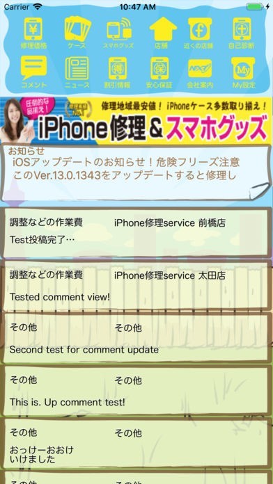 App Storeより引用群馬のアイフォン修理サービスからのお知らせ、割引情報、修理情報を配信いたします。