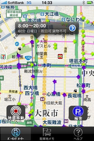 現在地周辺のパーキングメーターをマップで検索出来るスマホアプリ