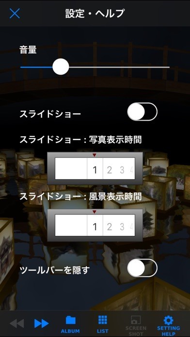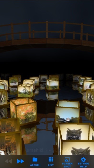 作成した灯篭をタップし、使用した写真を見ることができます。写真の全体像を確認したい時に使用してください。灯篭は一方向からではなく、色々な角度から閲覧可能です。またドラッグで任意の場所に動かせます。