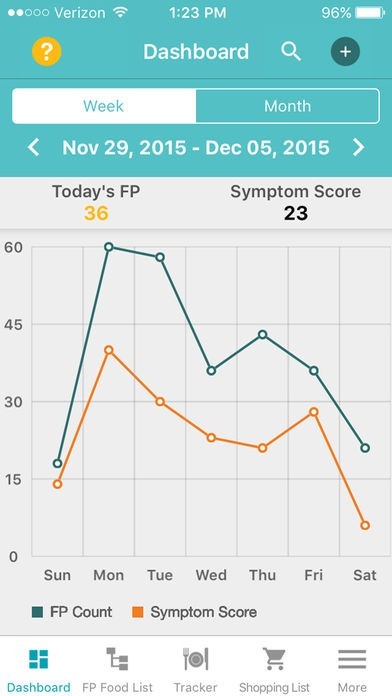 App Storeより引用Fast Tract Diet App helps you identify gut friendly foods versus hard-to-digest foods, track and chart your meals and symptoms, create shopping lists and quickly look up symptom potential for specific foods & drinks at your favorite market on the fly.