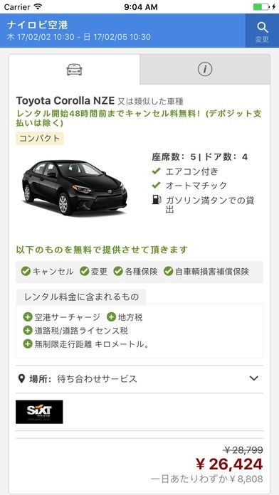 App Storeより引用あなたの位置と時間範囲を選んでください。 私たちは世界中のレンタカー会社から手ごろな価格を集めています。