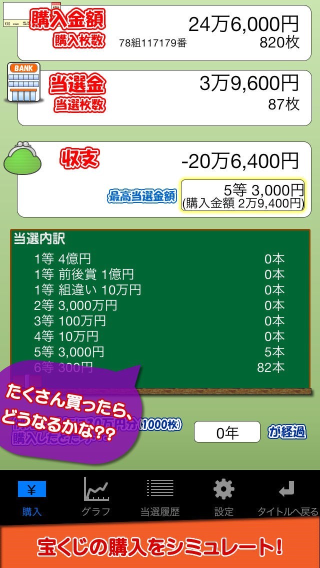 あと、運良く(悪く?)このアプリですぐ当たった方、調子に乗って宝くじを買い過ぎないようにね。