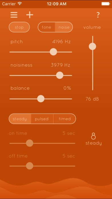 Based on clinical research on sound therapy, Whist provides a flexible and easy-to-use interface for masking and residual inhibition of tinnitus. Each of Whist’s controls adjusts an essential and easily-understood characteristic of the sound. By following the simple instructions that are provided, you will be able to match the pitch, noisiness and loudness of your tinnitus to find the best sound for your unique tinnitus relief.