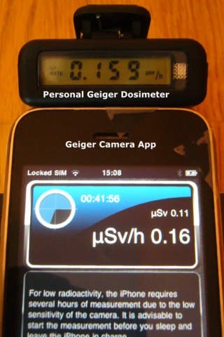 App Storeより引用アプリケーション"ガイガーカメラは"放射能の検出器としてカメラを使用しています。それはあなたが原子力事故の場合に警告を発するように、そしてあなたの周りの放射能を監視することができます。