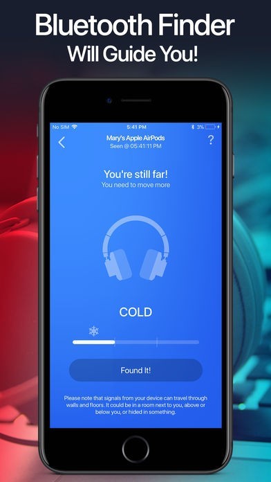 • Walk around slowly. As you move closer to your lost headphones the indicator will change from Cold to Warmer / Hot.